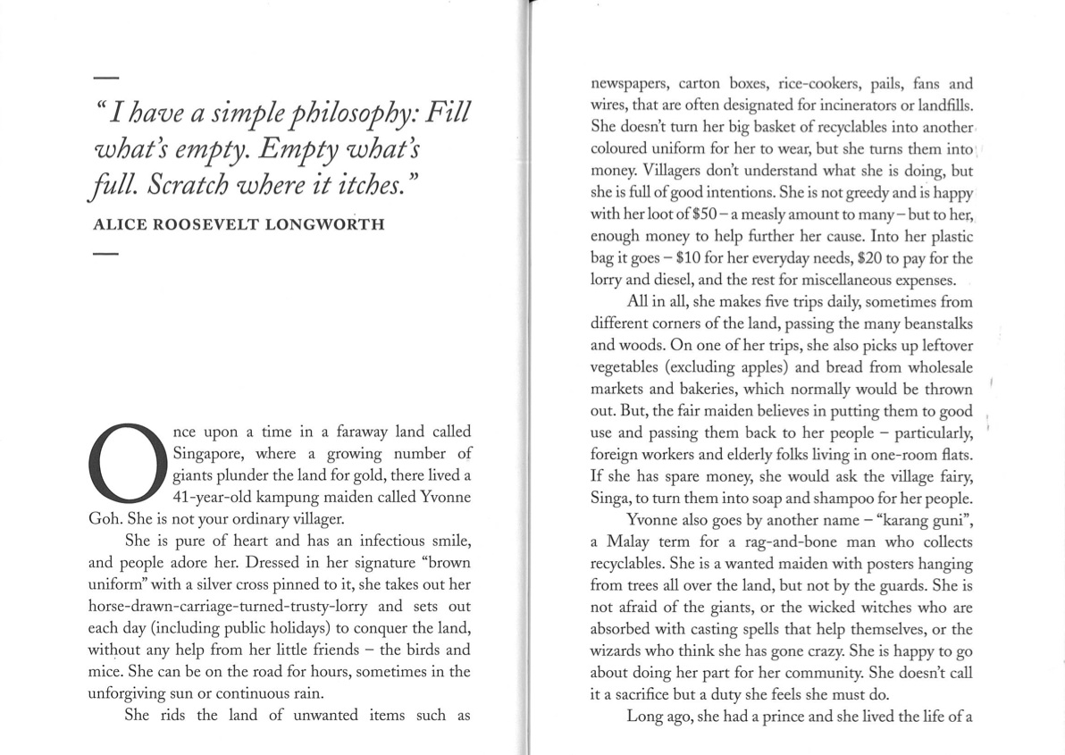 “The peasant princess” – a fairy tale about a kampung maiden. Published in the National Volunteer & Philanthropy Centre’s Annual Report 2012/2013.